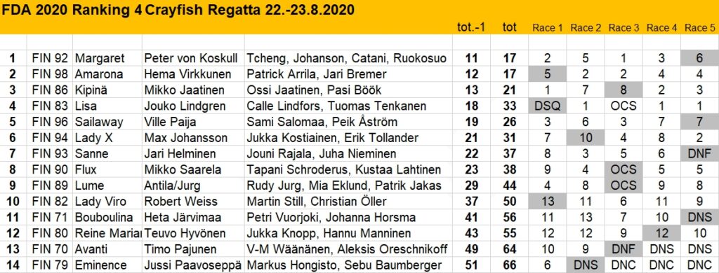 Next regatta is 29/30 August at Brando Sailing Club sailed inside Helsinki Harbour.